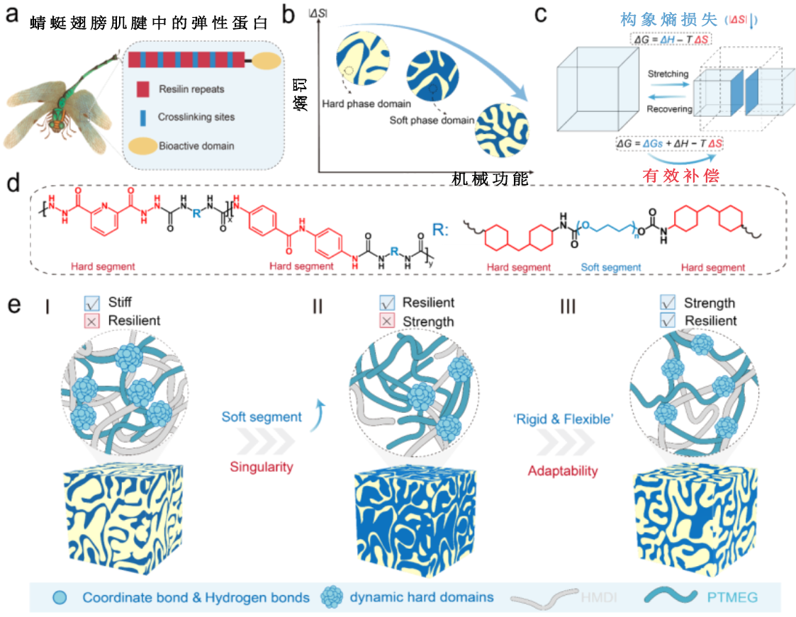 受蜻蜓角質(zhì)層中彈性蛋白啟發(fā)的可調(diào)聚氨酯彈性體設(shè)計制備示意圖