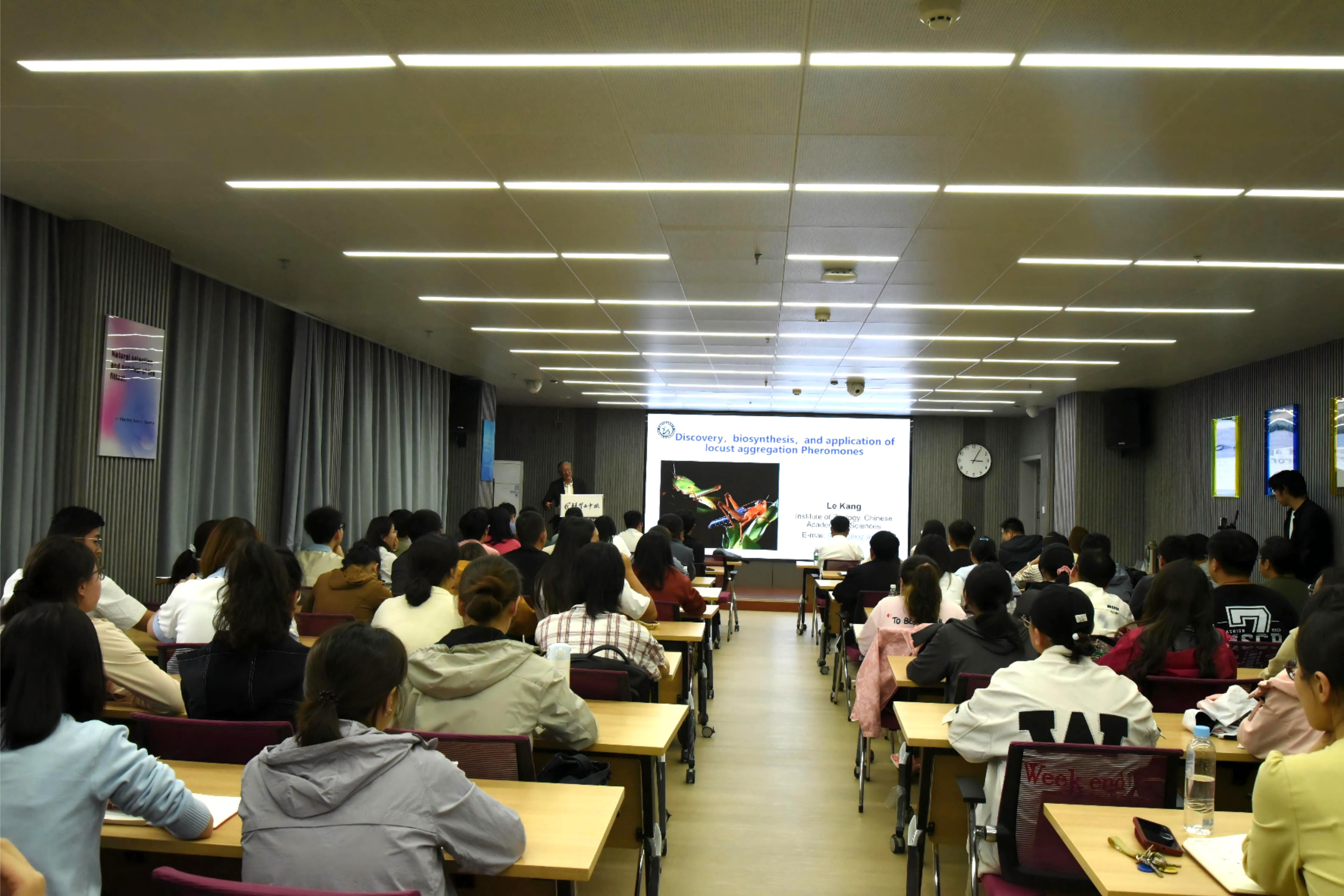 為領(lǐng)略科學(xué)前沿,拓展學(xué)術(shù)視野,點(diǎn)燃科學(xué)創(chuàng)新熱情,8月30日下午,中國(guó)科學(xué)院西北高原生物研究所舉辦了主題為“蝗蟲群聚信息素的發(fā)現(xiàn)、生物合成與應(yīng)用”學(xué)術(shù)報(bào)告會(huì)。中國(guó)科學(xué)院院士康樂(lè)受邀擔(dān)任主講嘉賓。西北高原所副所長(zhǎng)楊其恩主持報(bào)告會(huì)并致辭,西北高原所所長(zhǎng)陳世龍出席,辦公室主任王文娟,人事教育處副處長(zhǎng)楊紅霞,以及百余名師生聆聽。
